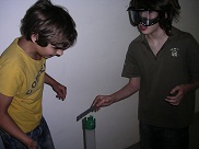 Eine Station, die sehr viel Anklang bei den Schülern findet, ist die Station mit der „Betrunkenen-Brille“. Diese Brille simuliert einen Zustand von 1,5 Promille, mit dem die Schüler einfache Balance-Aufgaben erfüllen sollen.